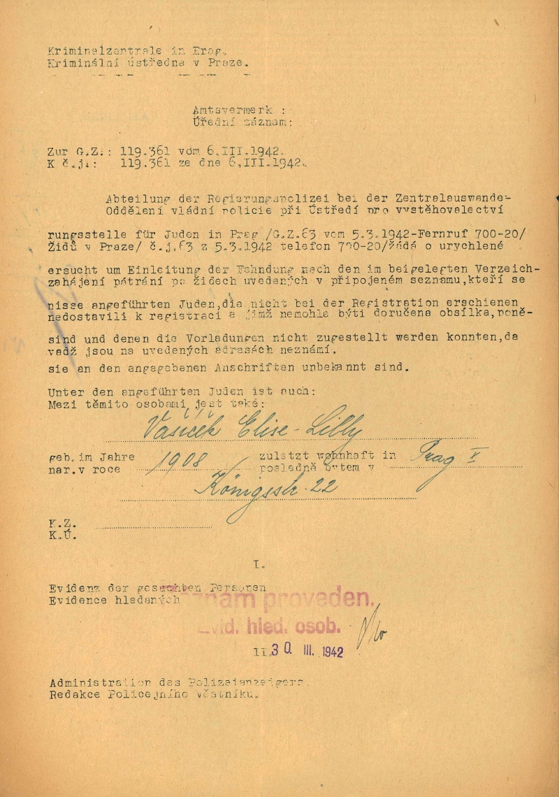 Vašíčková Eliška Lilly: Pátrání po neregistrovaných Židech