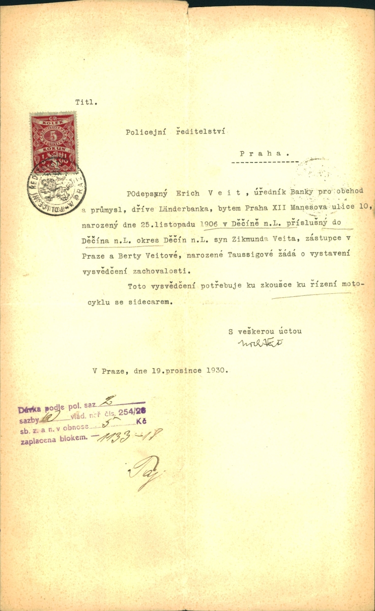 Veit Erich: Žádost o vystavení vysvědčení zachovalosti