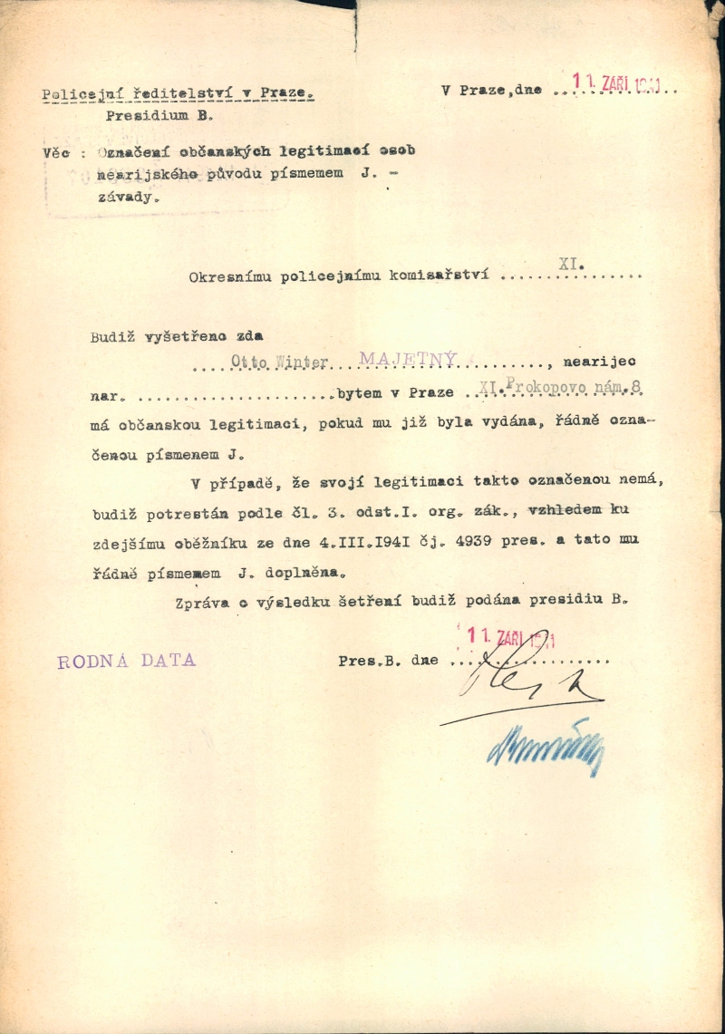 Vintr Ota: Označení občanských legitimací písmenem J