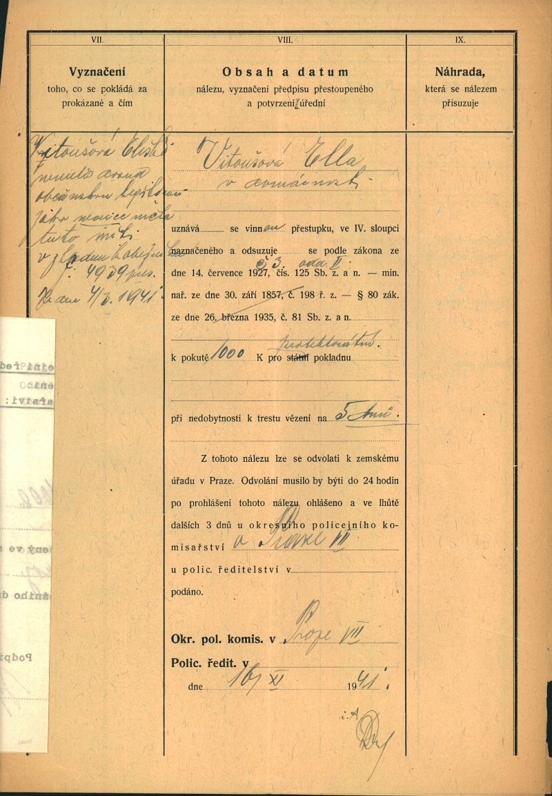 National archives Prague > Police Directorate Prague > 1941-1950 > V > Vitoušová Eliška
