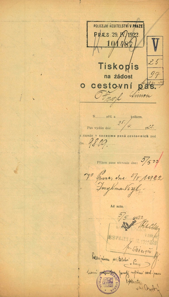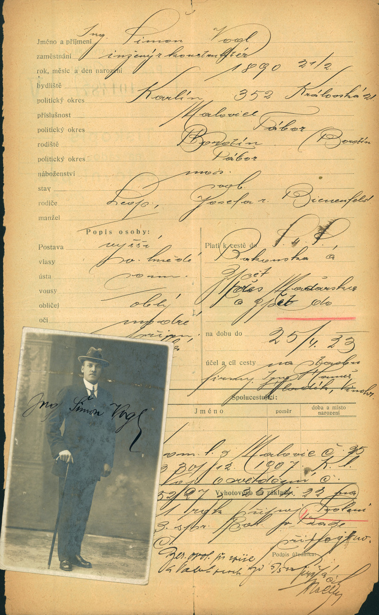 Vogl Šimon: Žádost o vydání cestovního pasu