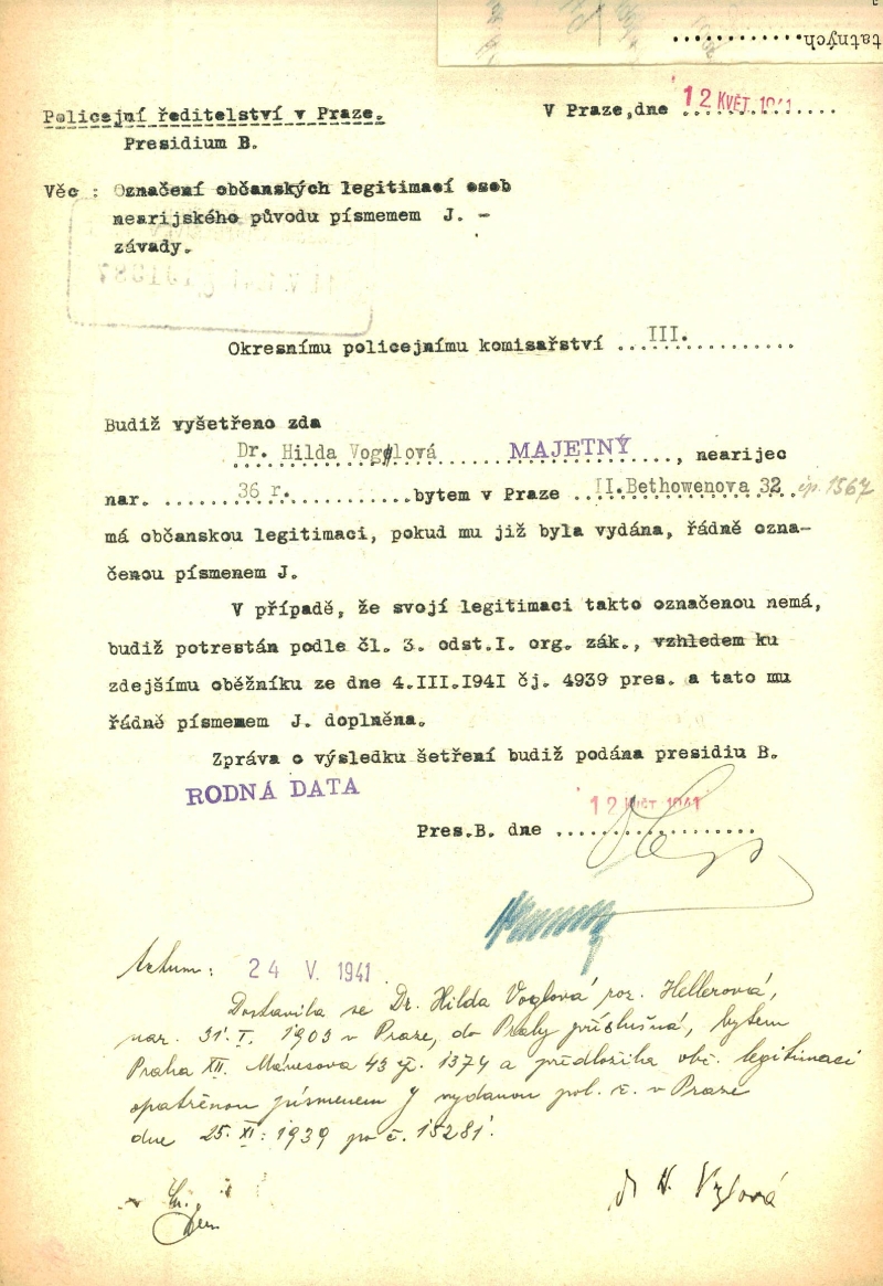 National archives Prague > Police Directorate Prague > 1941-1950 > V > Voglová Hildegarda
