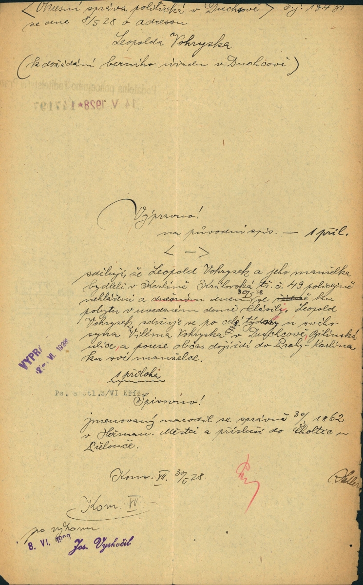 National archives Prague > Police Directorate Prague > 1941-1950 > V > Vohryzek Leopold