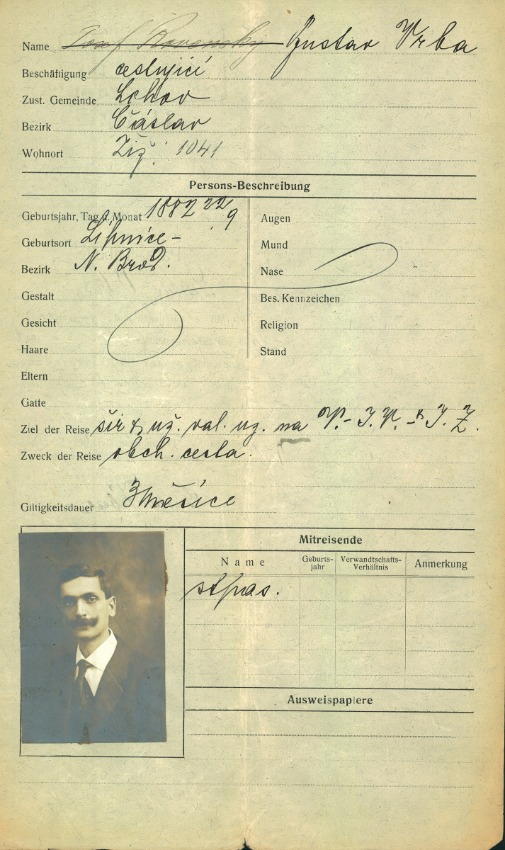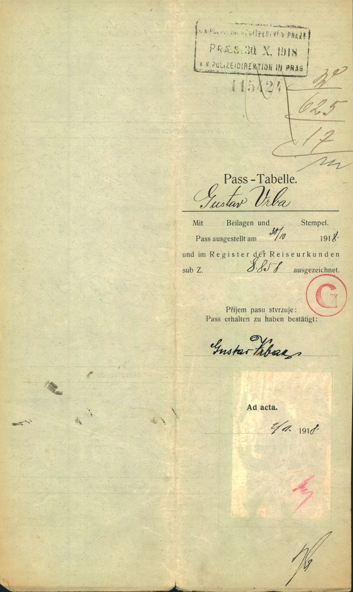 Vrba Gustav: Žádost o vydání cestovního pasu