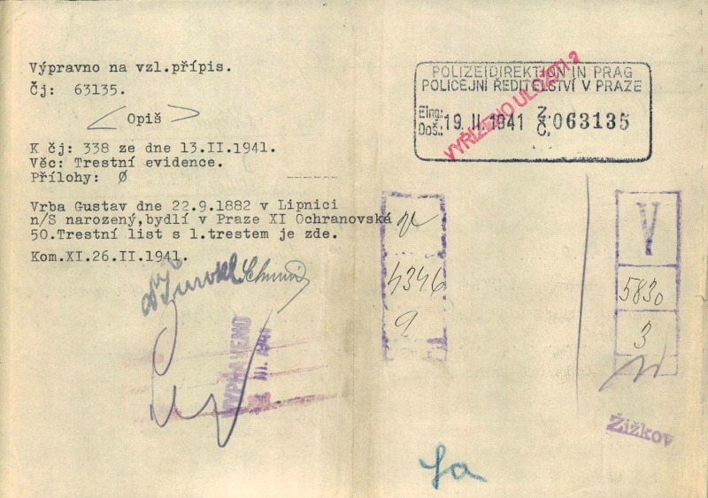 National archives Prague > Police Directorate Prague > 1941-1950 > V > Vrba Gustav