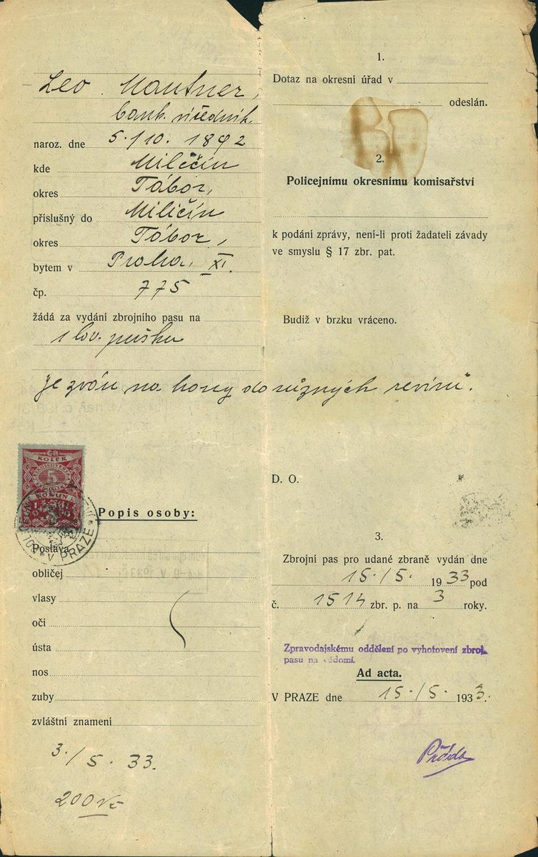 Mautner Leo: Žádost o vydání zbrojního pasu
