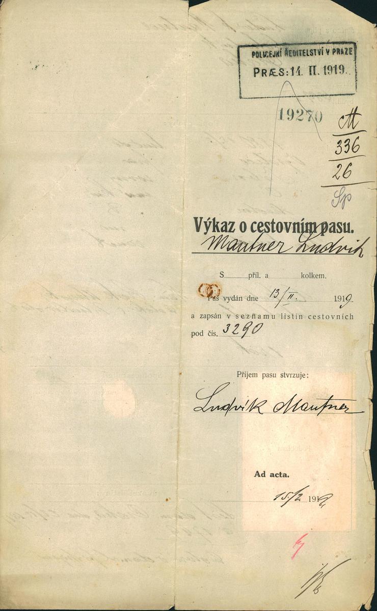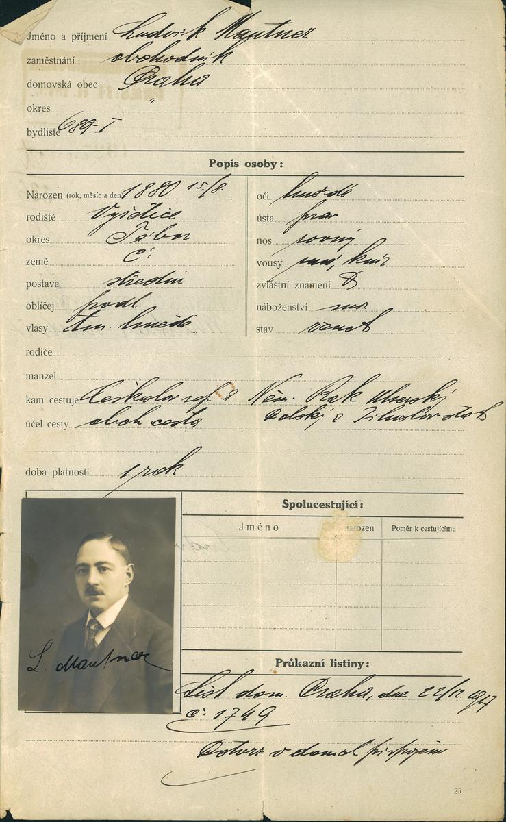 Mautner Ludvík: Žádost o vydání cestovního pasu