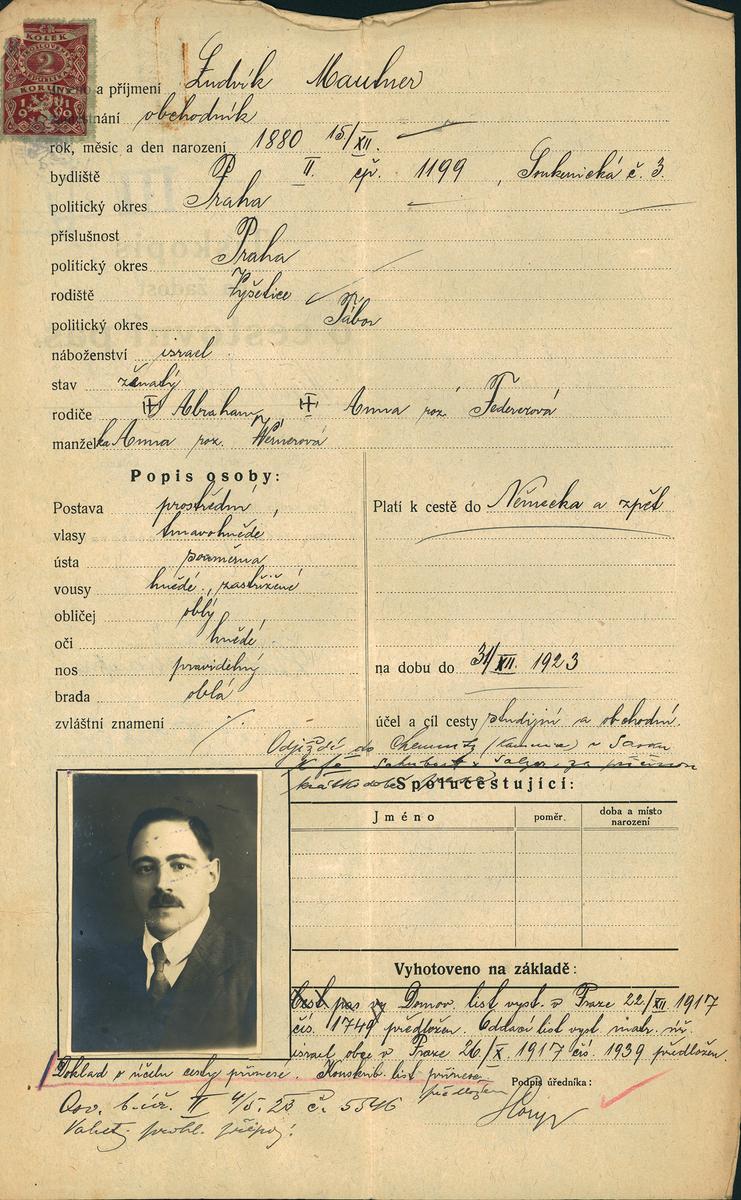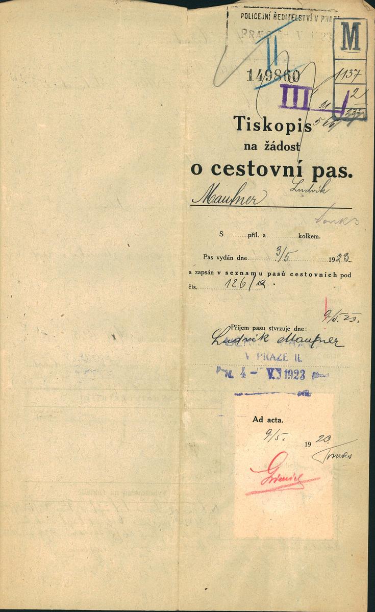 Mautner Ludvík: Žádost o vydání cestovního pasu