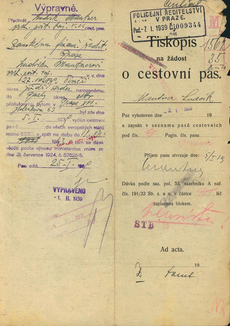 Mautner Ludvík: Žádost o změnu v cestovním pasu