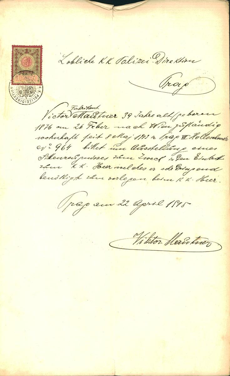 Mautner Viktor: Žádost o vystavení vysvědčení zachovalosti