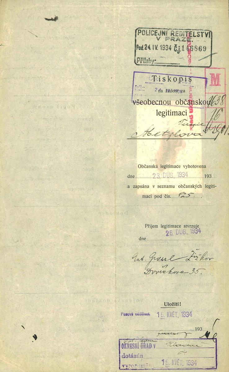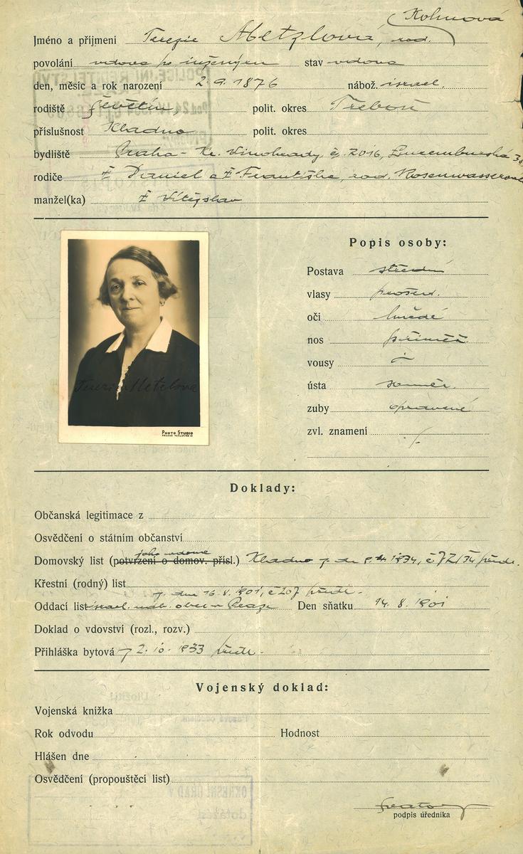 National archives Prague > Police Directorate Prague > 1931-1940 > M > Metzlová Tereza