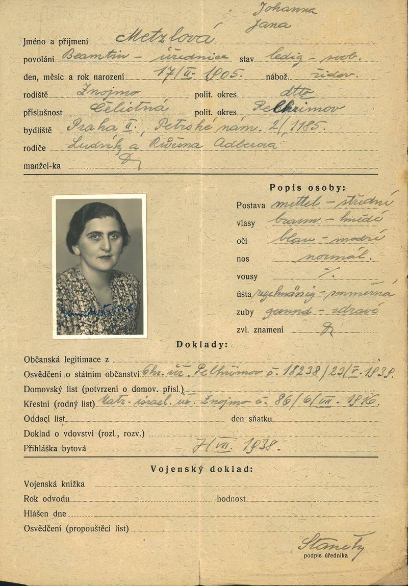 National archives Prague > Police Directorate Prague > 1931-1940 > M > Metzlová Jana