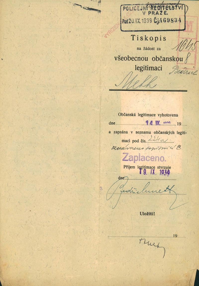 Meth Bedřich: Žádost o vydání občanské legitimace
