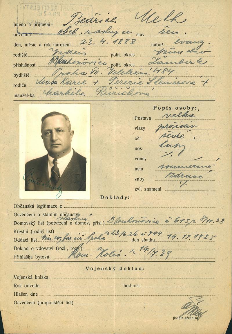 National archives Prague > Police Directorate Prague > 1931-1940 > M > Meth Bedřich