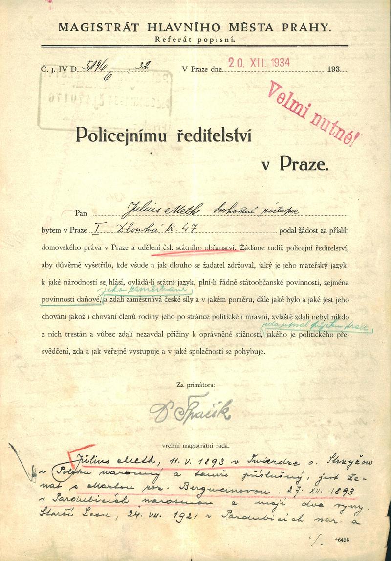 National archives Prague > Police Directorate Prague > 1931-1940 > M > Meth Julius