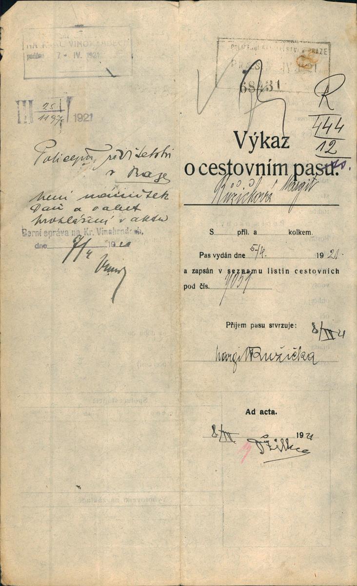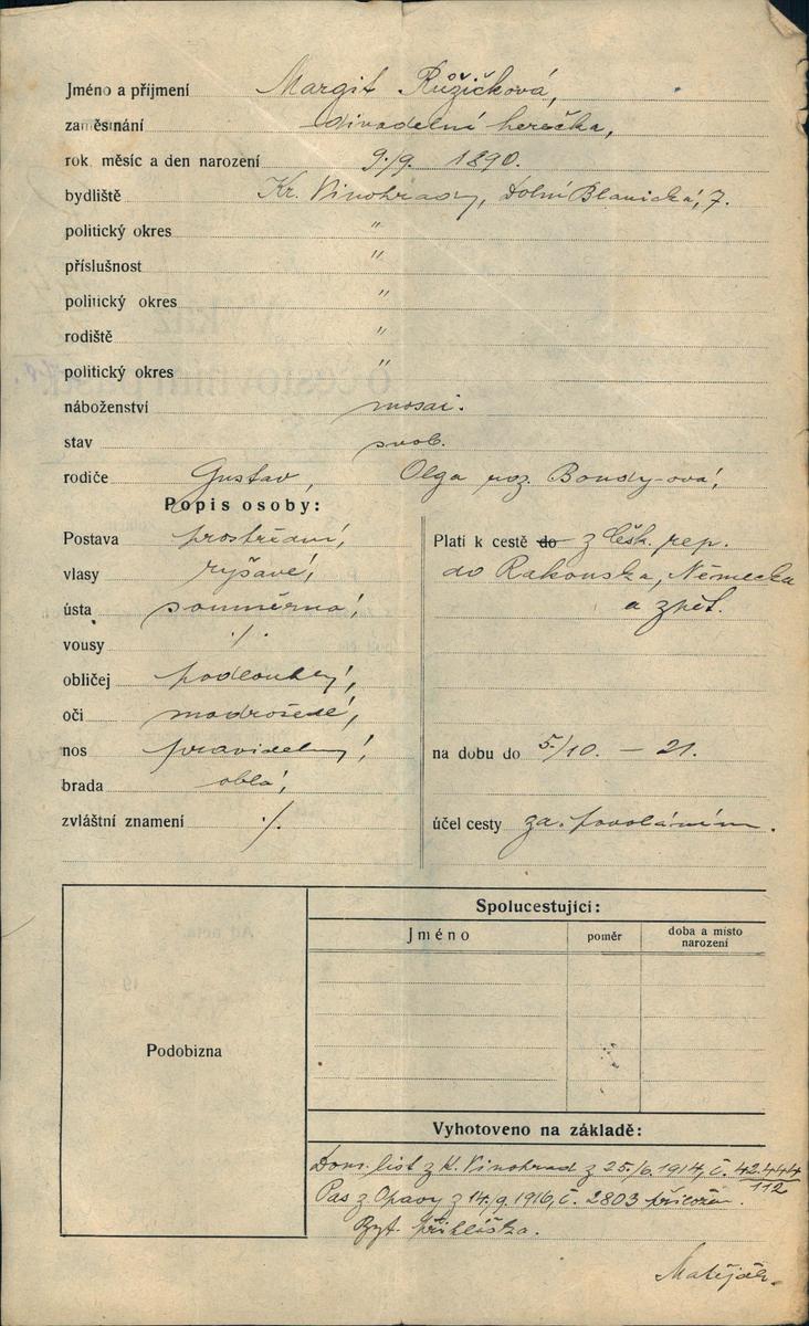 Methová Margita: Žádost o vydání cestovního pasu