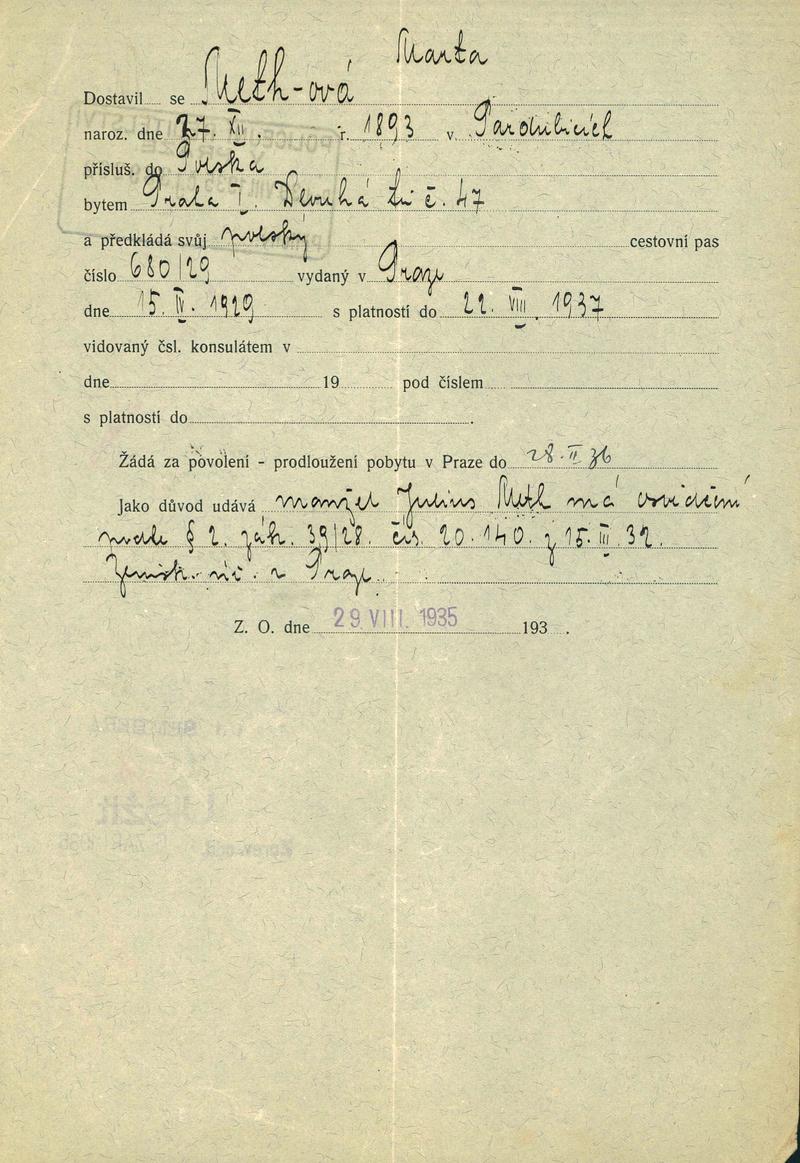 National archives Prague > Police Directorate Prague > 1931-1940 > M > Methová Marta