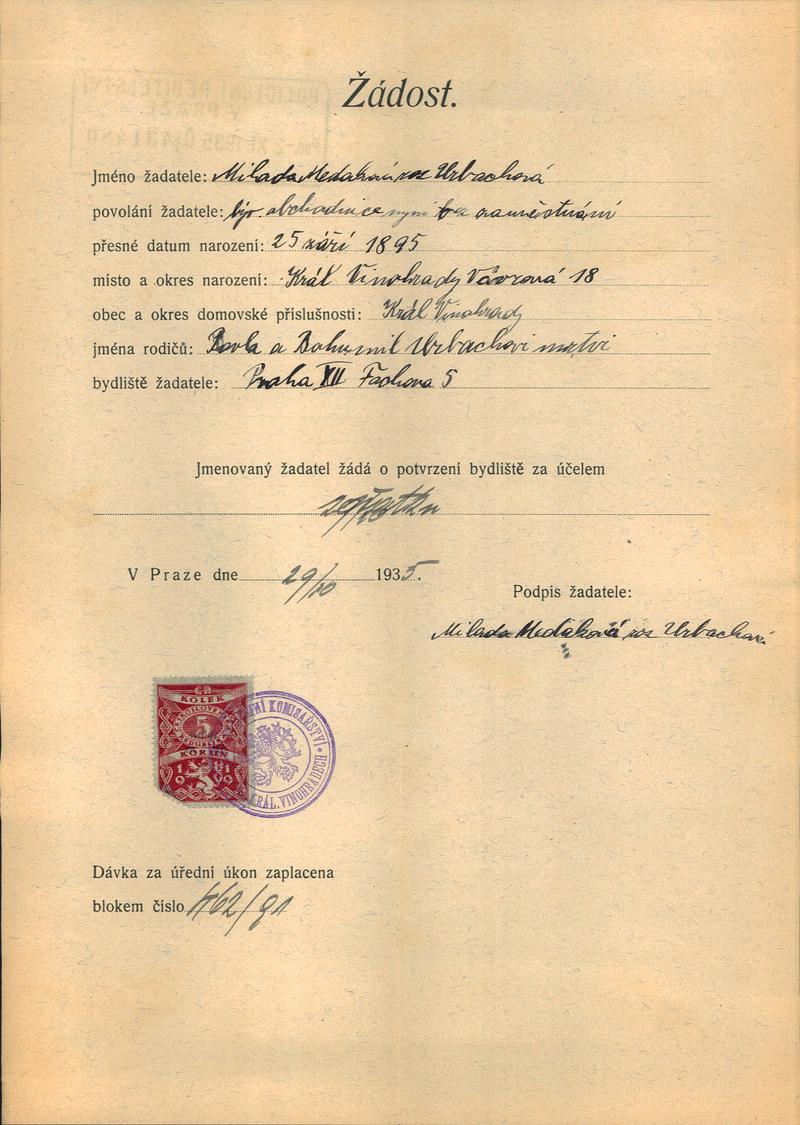 National archives Prague > Police Directorate Prague > 1931-1940 > M > Medaková Milada