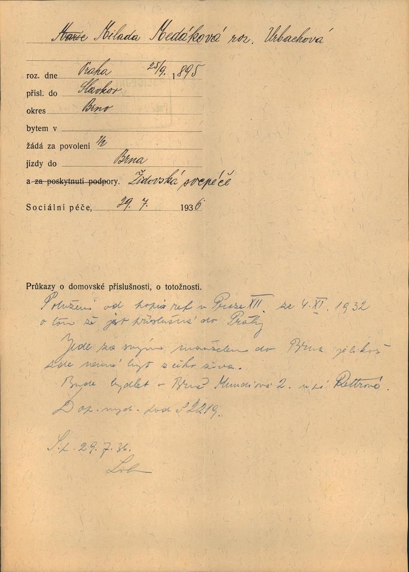 Medaková Milada: Žádost o povolení jízdy do Brna