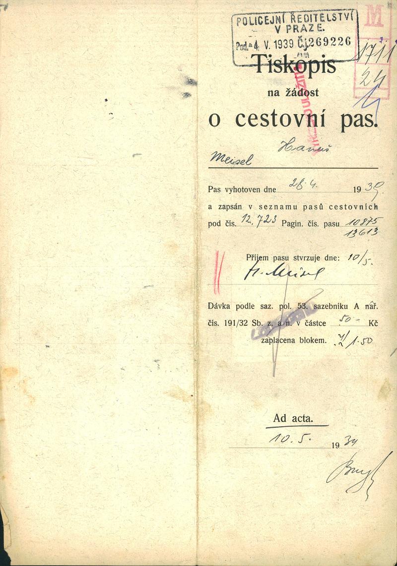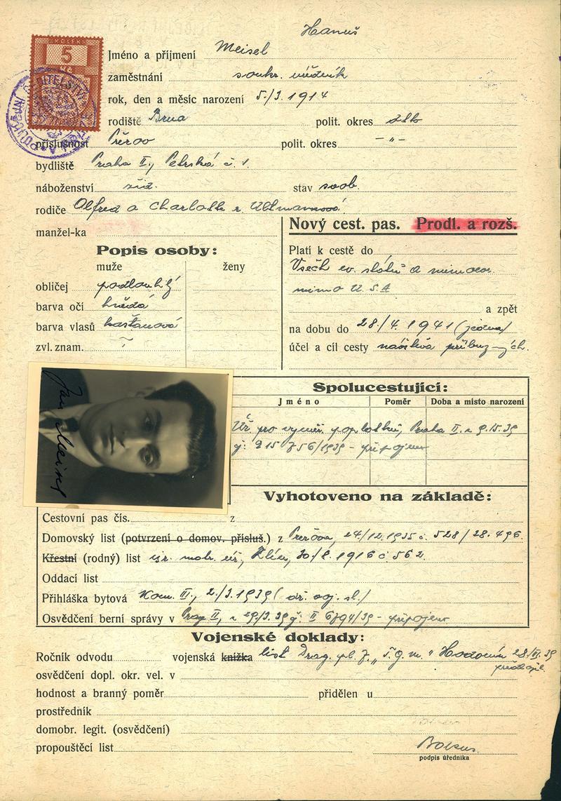 Meisel Jan: Žádost o vydání cestovního pasu
