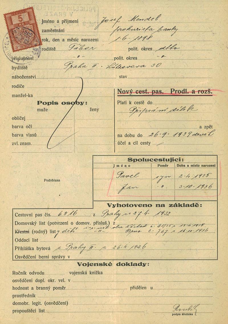 Mendl Josef: Žádost o připsání dítěte do cestovního pasu