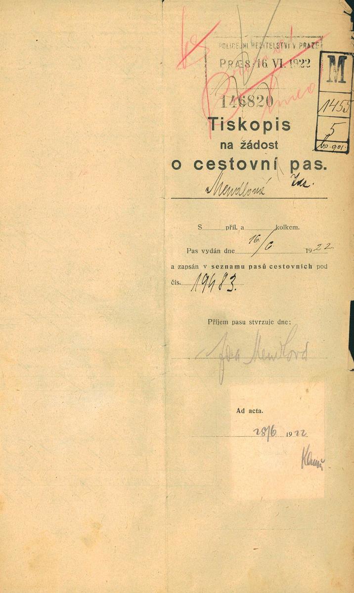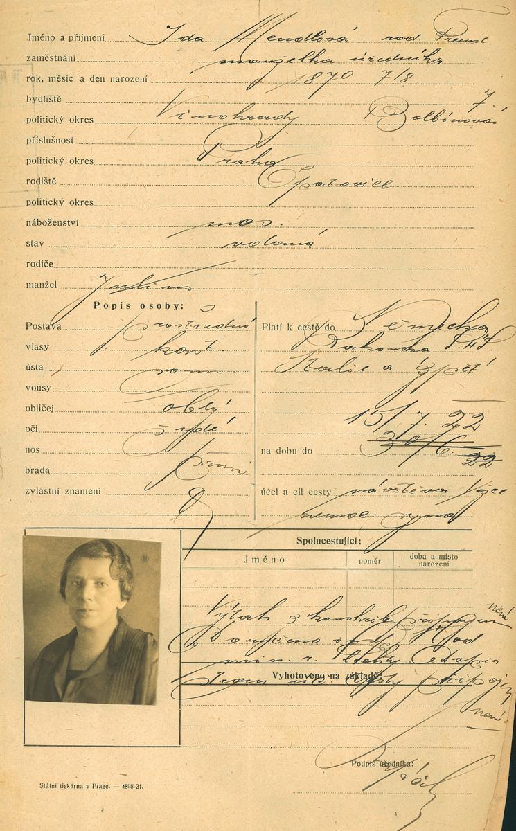 Mendlová Ida: Žádost o vydání cestovního pasu