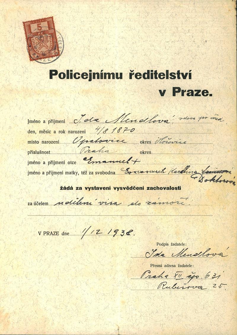 National archives Prague > Police Directorate Prague > 1931-1940 > M > Mendlová Ida