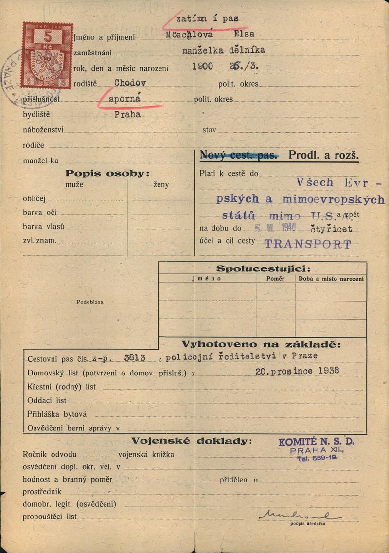 Möschlová Eliška: Žádost o prodloužení a rozšíření prozatímního cestovního pasu
