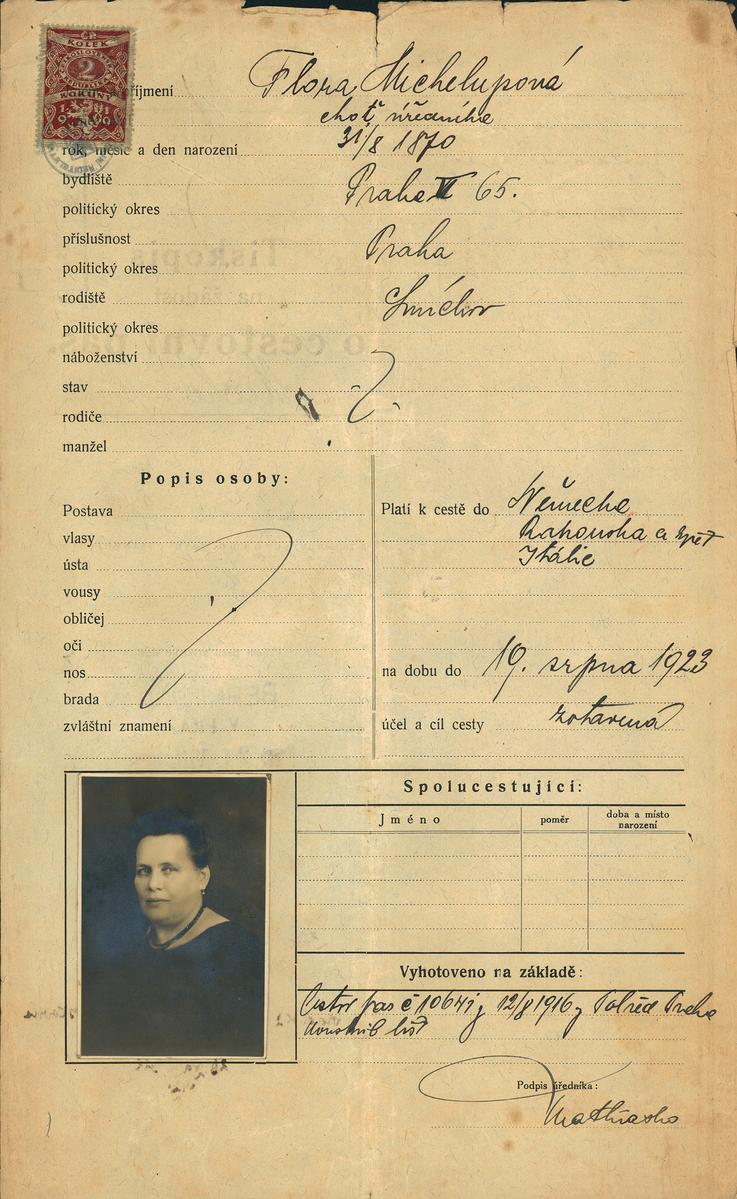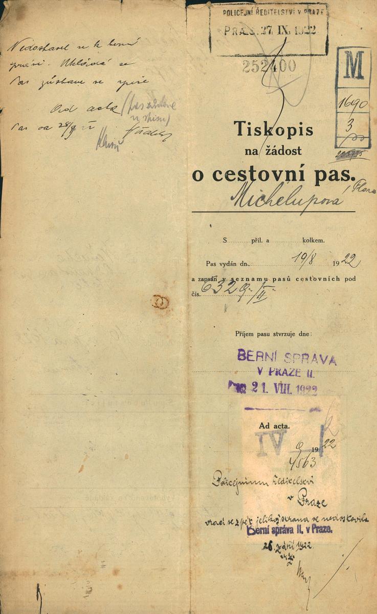 Michelupová Flora: Žádost o vydání cestovního pasu