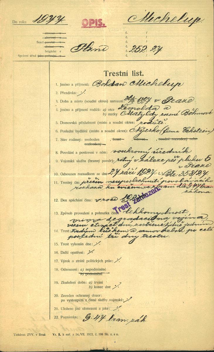 National archives Prague > Police Directorate Prague > 1931-1940 > M > Michelup Bohdan