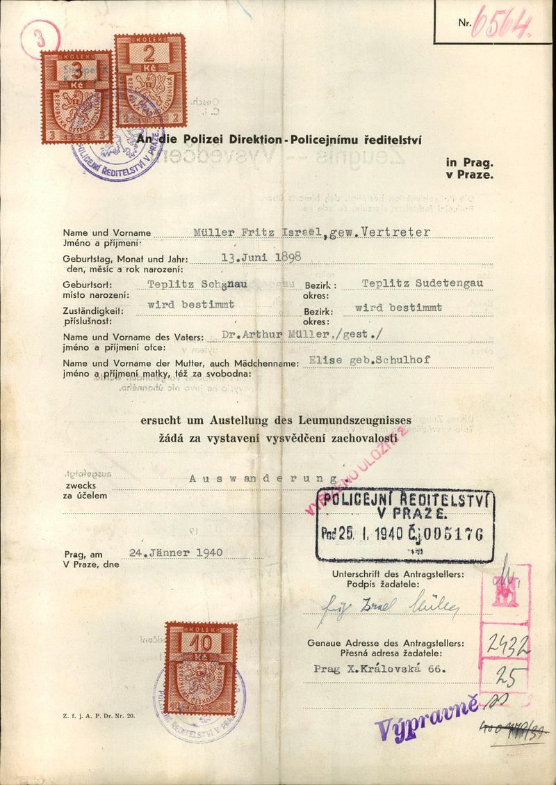 National archives Prague > Police Directorate Prague > 1931-1940 > M > Müller Bedřich