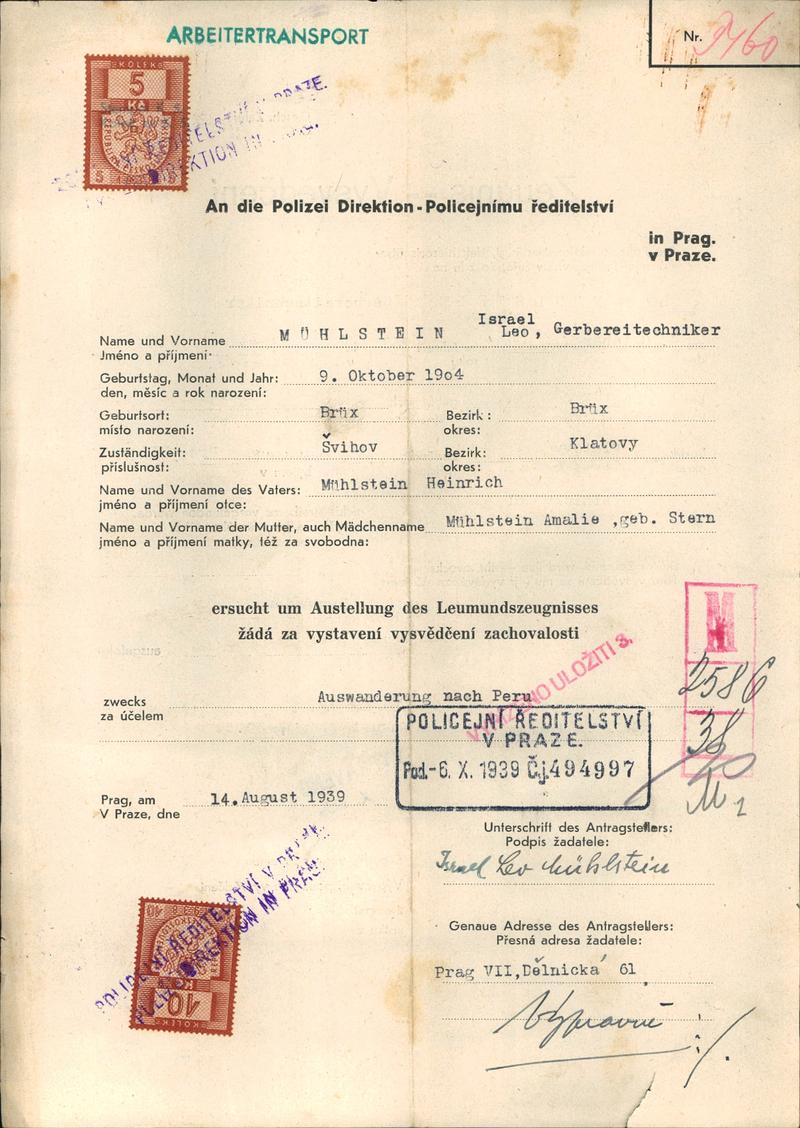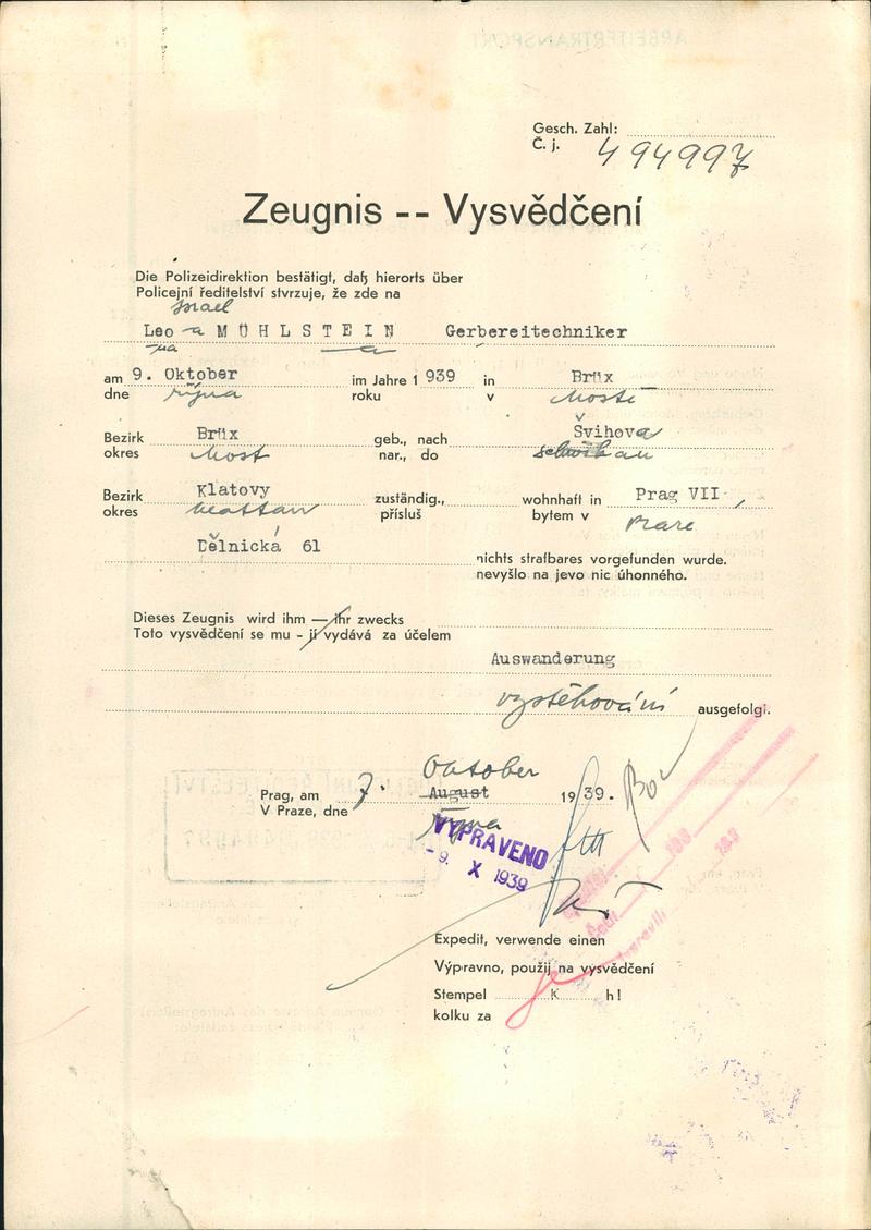 National archives Prague > Police Directorate Prague > 1931-1940 > M > Mühlstein Leo