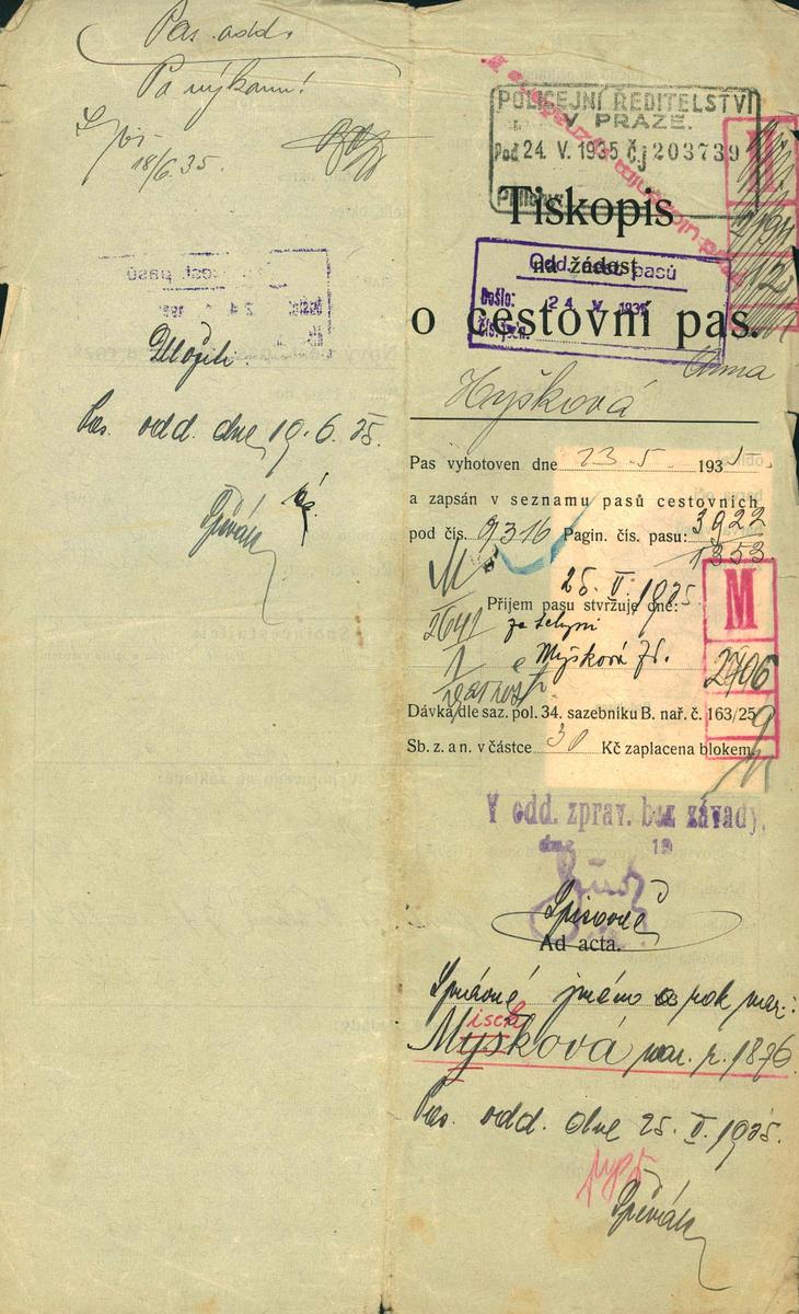 National archives Prague > Police Directorate Prague > 1931-1940 > M > Myšková Anna