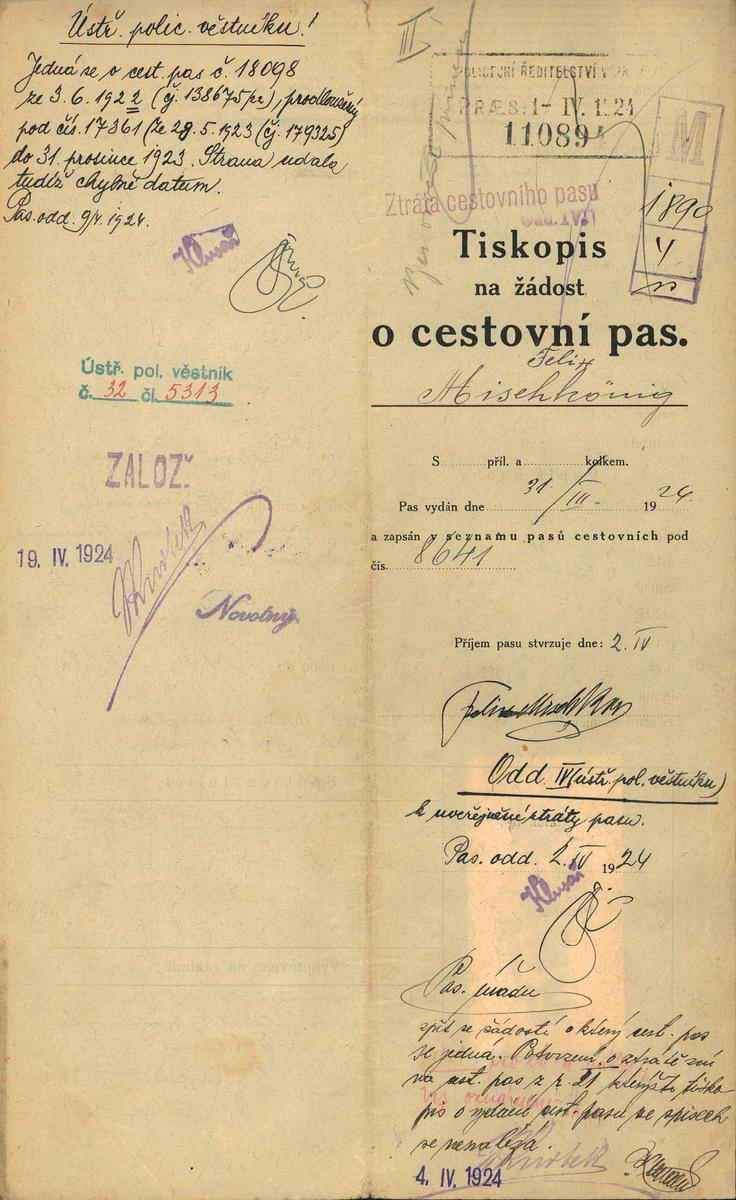 Mischkönig Felix: Žádost o vydání cestovního pasu