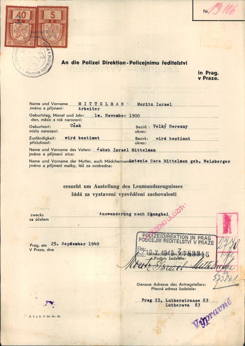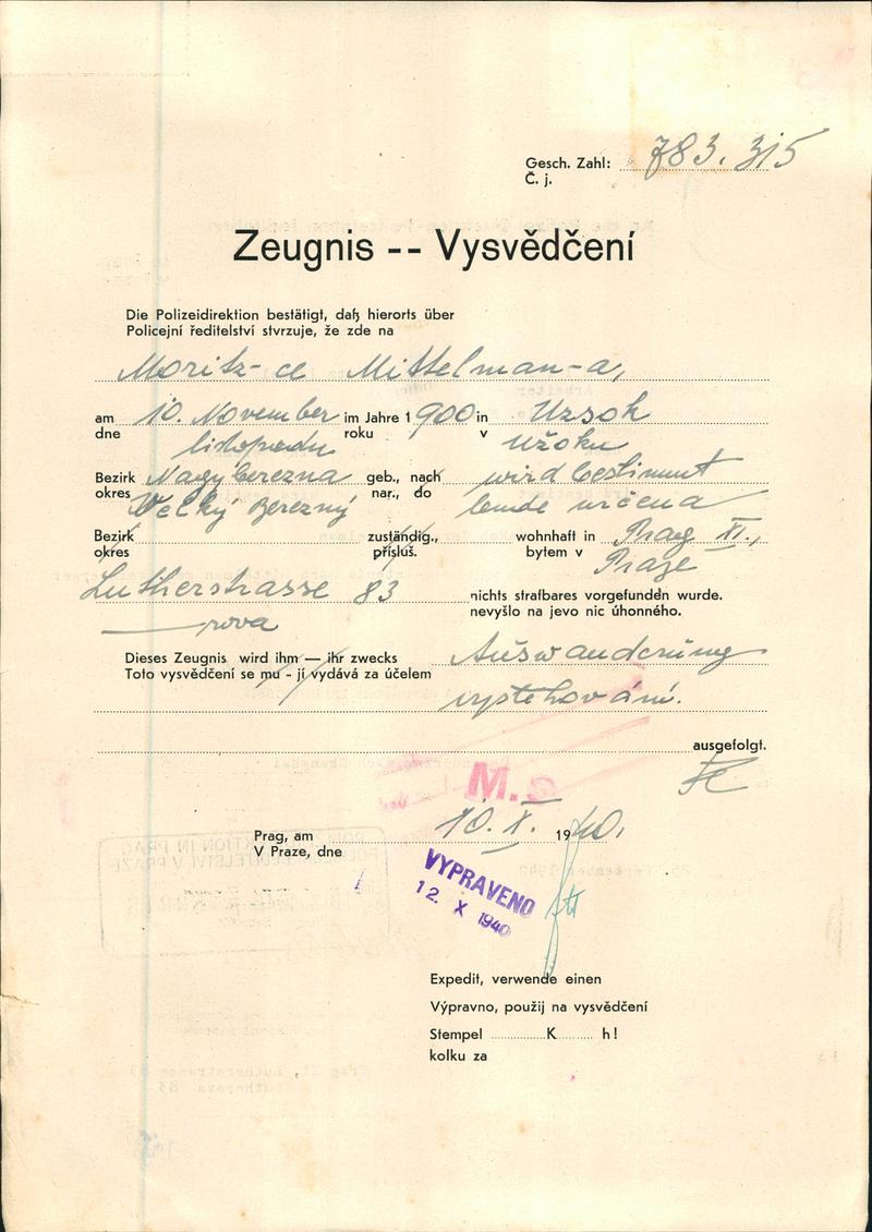 National archives Prague > Police Directorate Prague > 1931-1940 > M > Mittelman Moritz