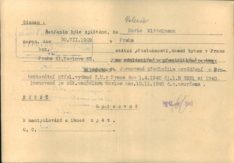 National archives Prague > Police Directorate Prague > 1931-1940 > M > Mittelmanová Valerie