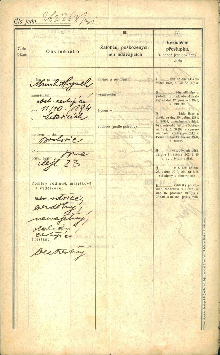 National archives Prague > Police Directorate Prague > 1931-1940 > M > Munk Hynek