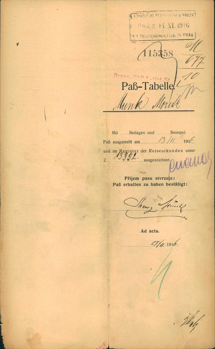 National archives Prague > Police Directorate Prague > 1931-1940 > M > Munk Moritz