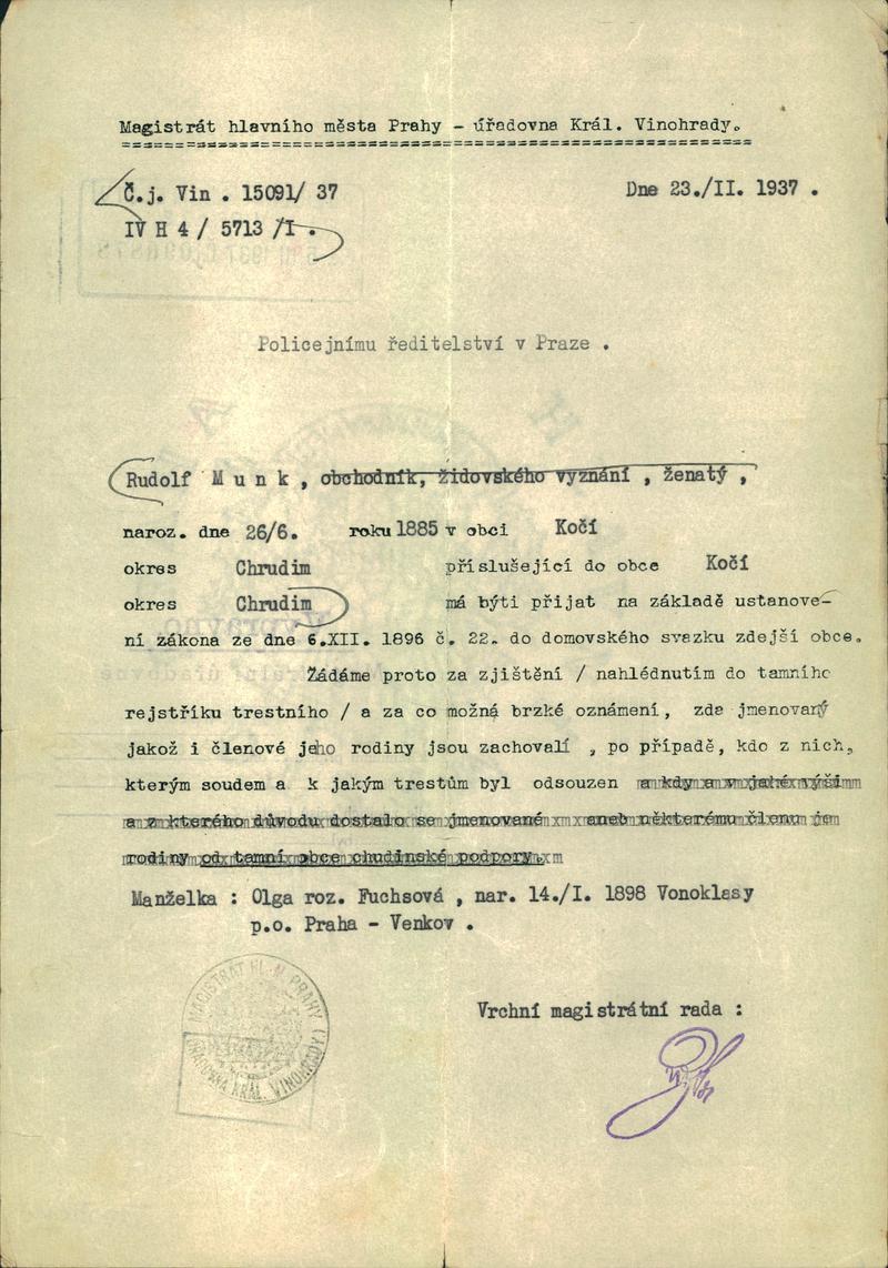 National archives Prague > Police Directorate Prague > 1931-1940 > M > Munk Rudolf