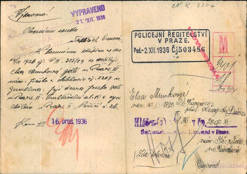 National archives Prague > Police Directorate Prague > 1931-1940 > M > Munková Elsa