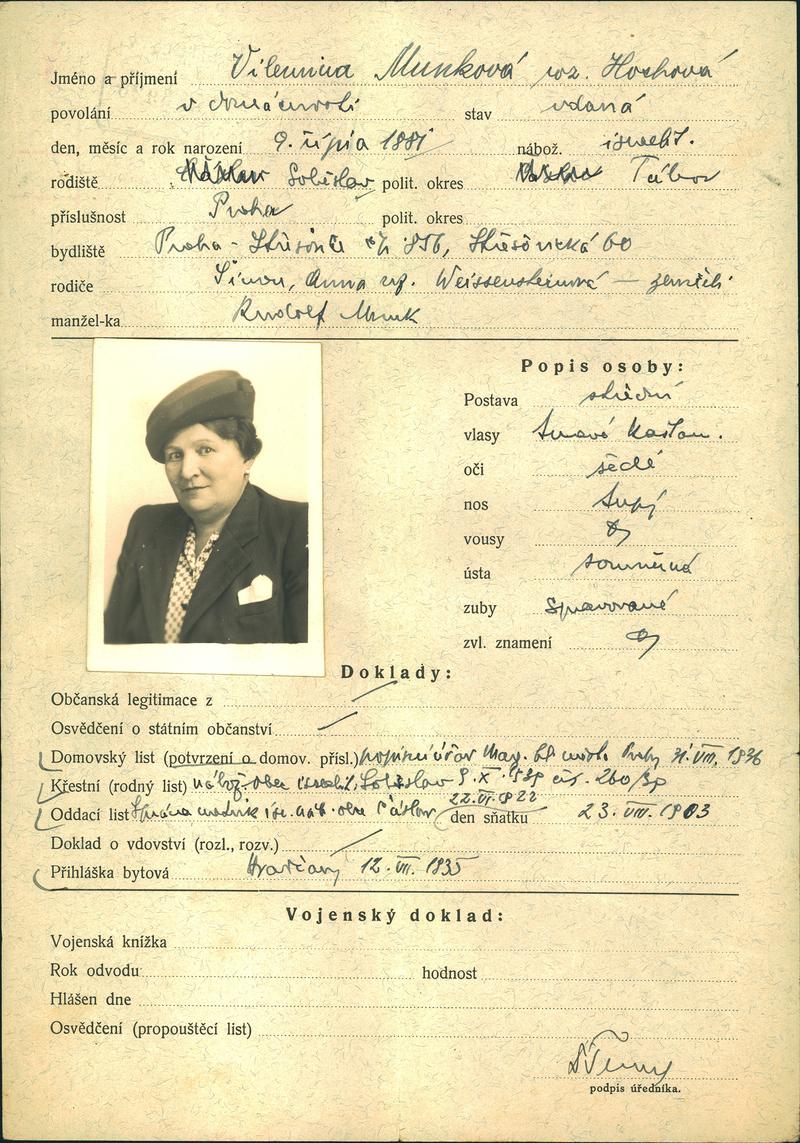 Munková Vilemina: Žádost o vydání občanské legitimace
