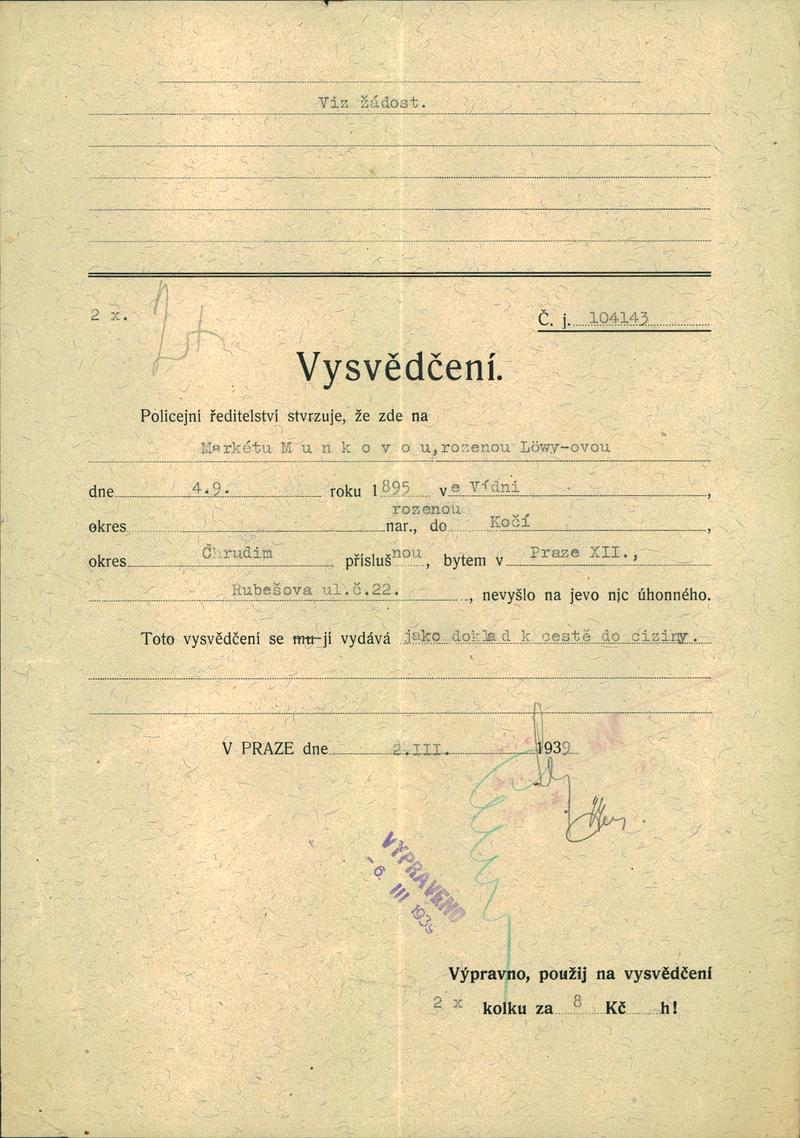 National archives Prague > Police Directorate Prague > 1931-1940 > M > Munková Markéta