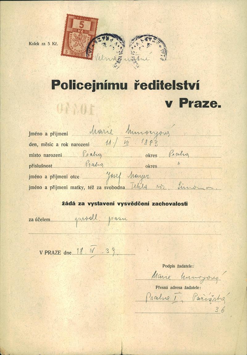National archives Prague > Police Directorate Prague > 1931-1940 > M > Munoryová Marie