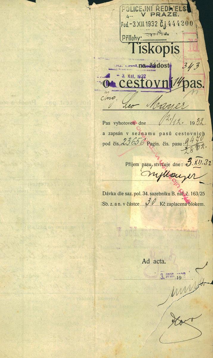 National archives Prague > Police Directorate Prague > 1931-1940 > M > Mayer Leo