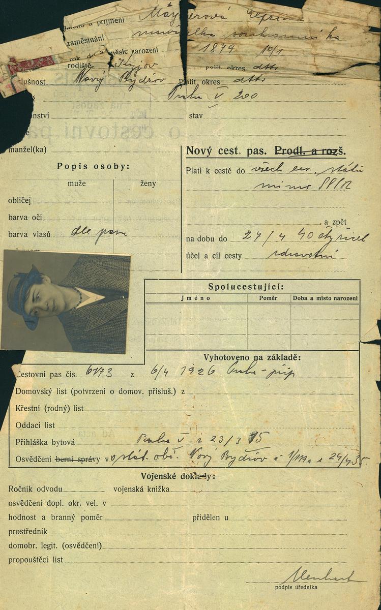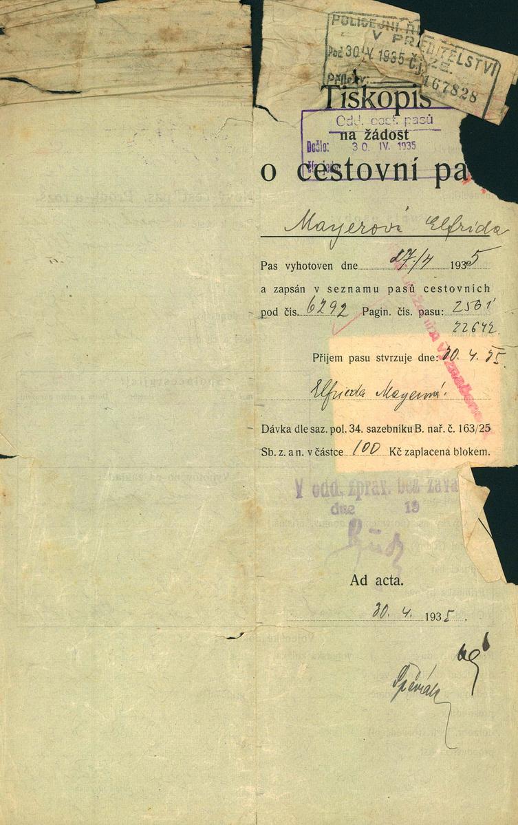 Mayerová Elfrieda: Žádost o vydání cestovního pasu