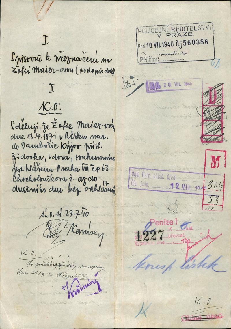 National archives Prague > Police Directorate Prague > 1931-1940 > M > Maierová Žofie