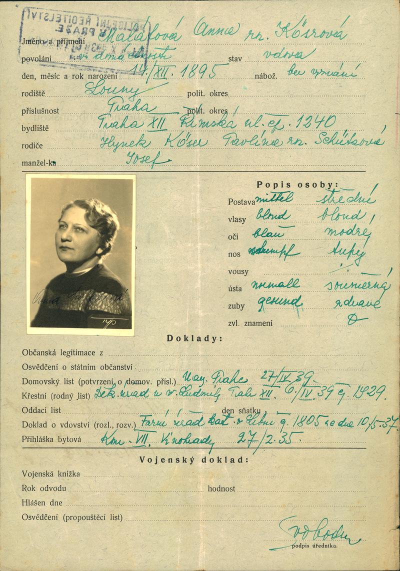 National archives Prague > Police Directorate Prague > 1931-1940 > M > Malátová Anna