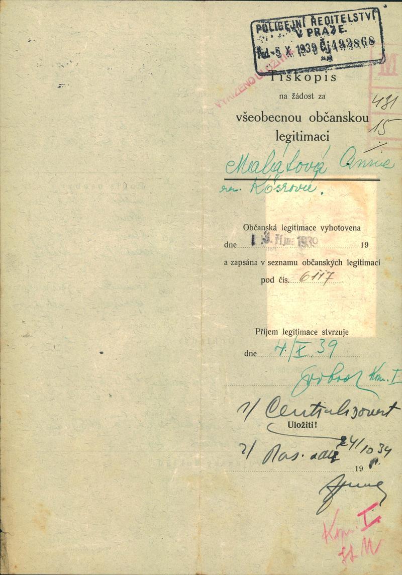 Malátová Anna: Žádost o vydání občanské legitimace