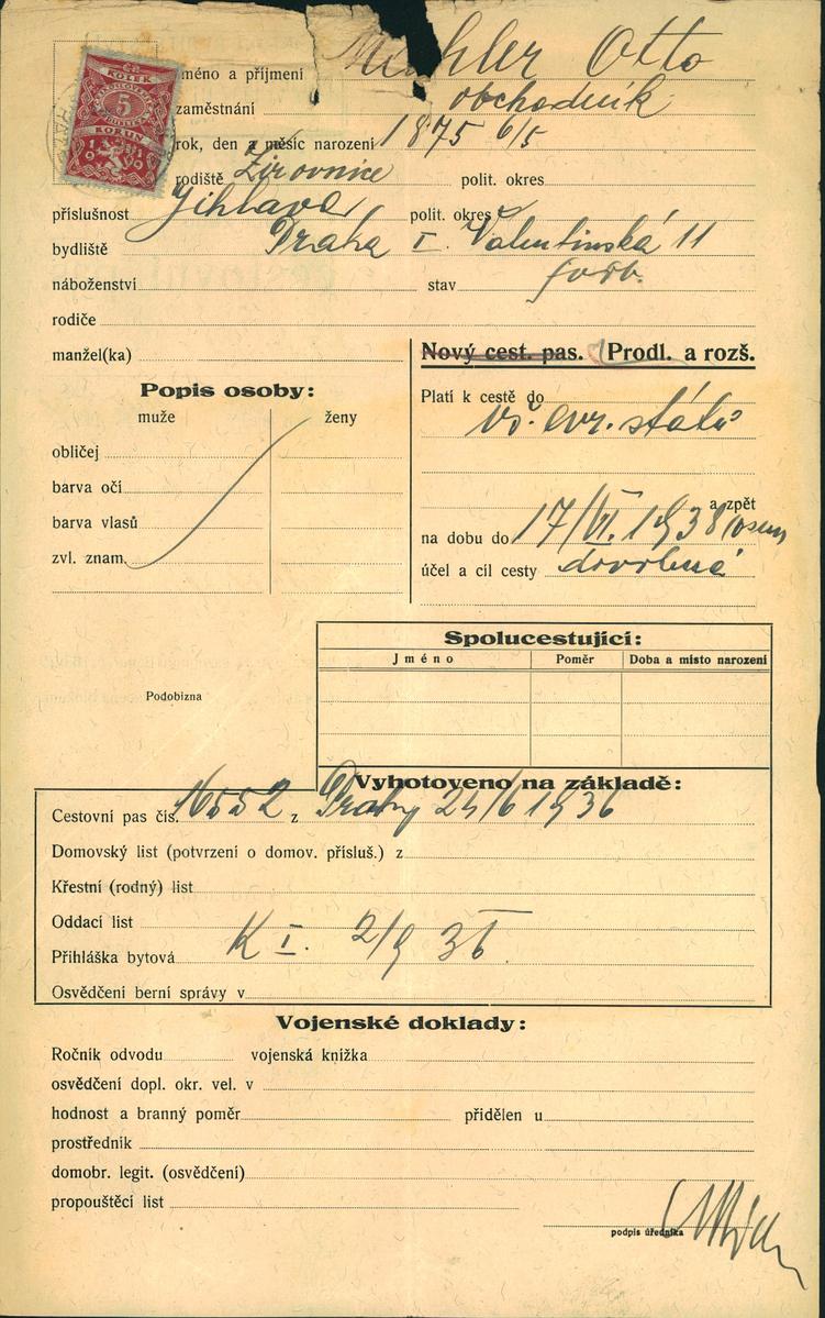 National archives Prague > Police Directorate Prague > 1931-1940 > M > Mahler Otto