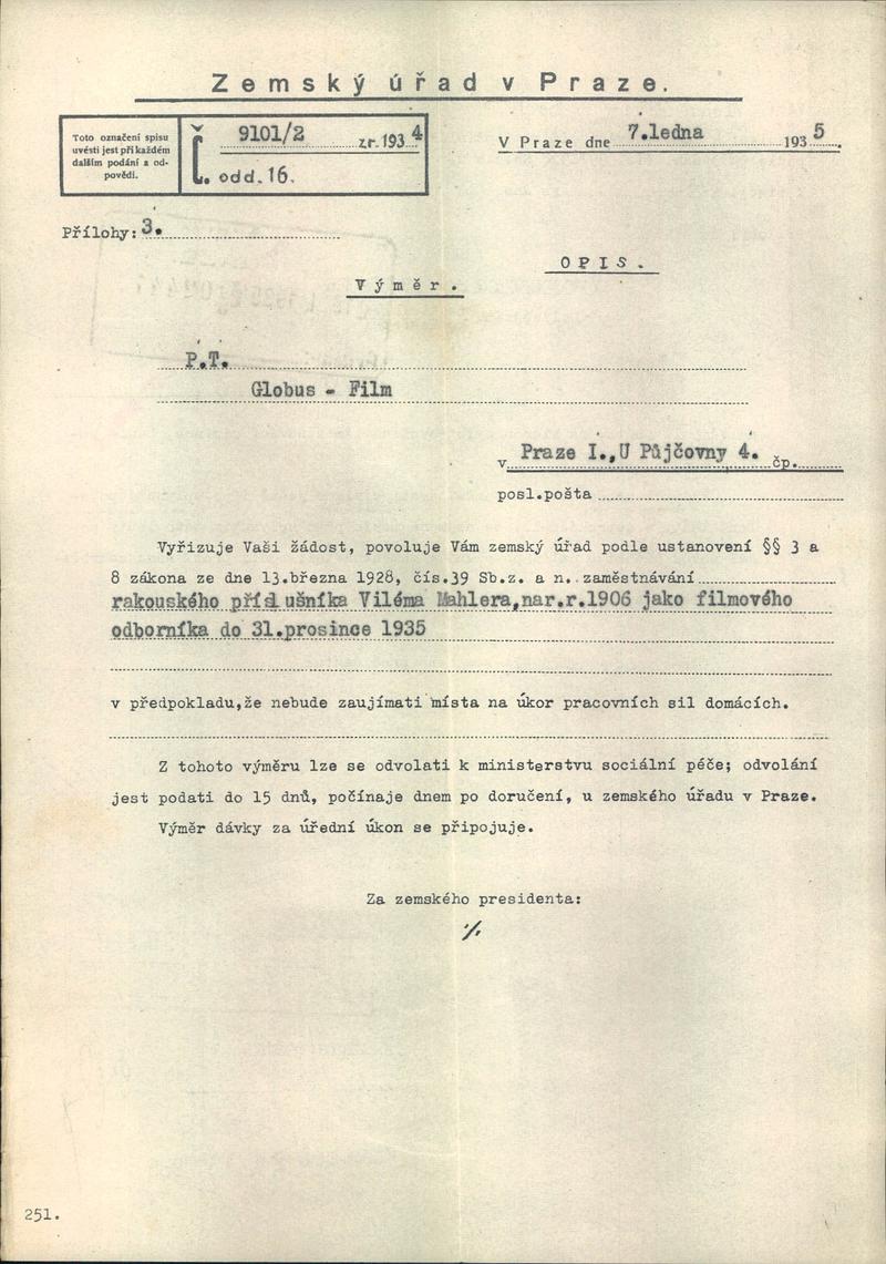 National archives Prague > Police Directorate Prague > 1931-1940 > M > Mahler Vilém